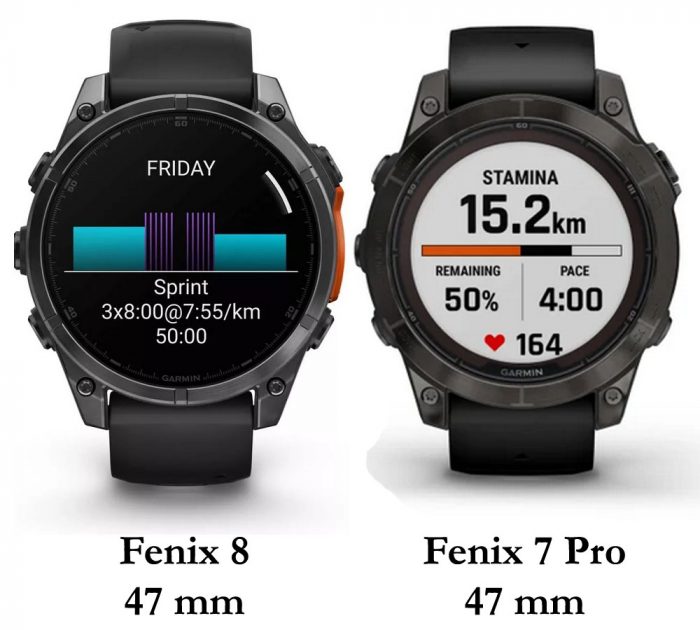 - les Fenix 8 et Fenix 8 Solar en version 47 mm passent à un écran de 35,5 mm (qui était jusqu’à maintenant la taille d’écran de la version X, en 51 mm)