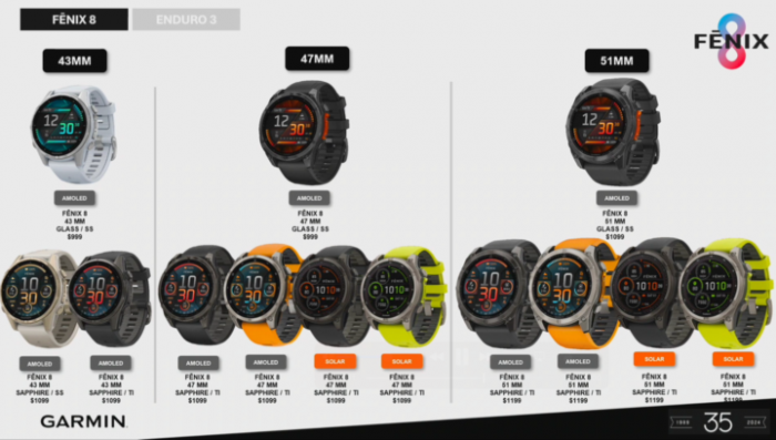 Les Fenix 8, Fenix 8 Solar et Enduro 3 ont été annoncées le 27 août 2024.