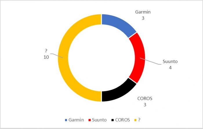 Jim Walmsley ayant abandonné, le panel de montres GPS à l’UTMB s’est restreint aux 4 classiques : Garmin, COROS, Suunto et Polar (pour info, il avait gagné l’an dernier avec une Wahoo).