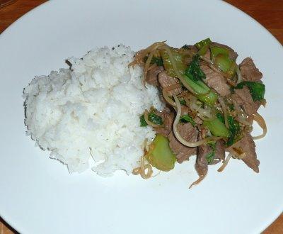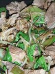 Lorsque le porc est quasiment cuit, ajouter les côtes du Shangai choï et le gingembre et laisser cuire environ 3 minutes.