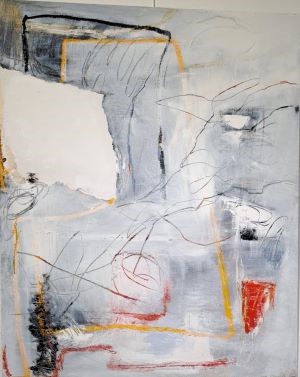 Chez Pascale Angelot, sur ce champ libre, donc, circulent des tracés, des contours, des cellules… Ils bougent, se déforment, se cognent, s’évanouissent parfois. Derrière eux (ou devant?) apparaissent des ombres. Comme les traces laissées par un déplacement. Quelques lignes à peine effacées ou vaguement devinées dans la brume.