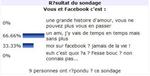 Depuis un bout de temps vous avez pu déclarer, grâce au sondage présent dans le blog-it, votre niveau de dépendance au célèbre site Facebook. Bon je reconnais que la foule ne s’est pas acharné sur mon sondage et que seulement 9 bonnes âmes ont prit le temps de répondre. Je les remercie donc bien chaleureusement. Voici donc les résultats tant attendu (ou non) :