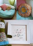 Cette semaine j'ai reçu un très joli paquet de Marion, rempli de petits trésor entièrement faits mains par ma créatrice adorée: un joli petit coussin tout rond, idéal pour le pouf "lecture" de mon p'tit champion; une magnifique aquarelle d'un chacha (qu'il adore!!!) et d'une souris; un grigri éléphant et des badges pour maman. Marion et Rose recevront leur paquet la semaine prochaine... ci-dessous un petit aperçu de ce que je leur ai préparé!