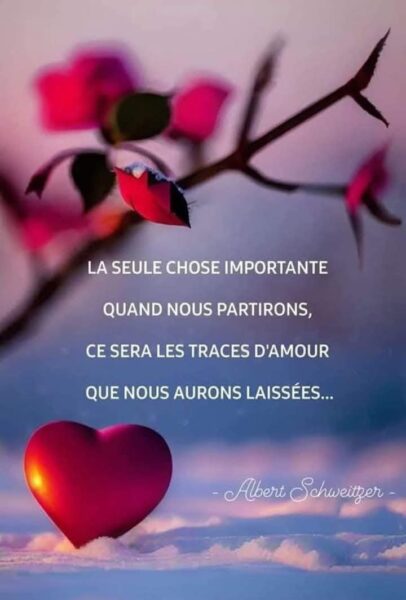 La seule chose importante quand nous partirons sera les traces d’amour que nous aurons laissées… – Albert Schweitzer