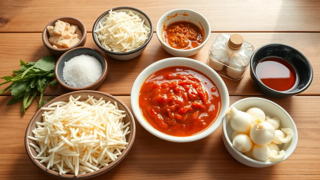 Pour la sauce, vous aurez besoin de sauce soja, de sucre, d’ail et de bouillon de poisson ou de légumes. Enfin, n’oubliez pas de vous procurer des gâteaux de poisson, appelés “eomuk”, qui sont traditionnellement ajoutés au Tteokbokki pour une touche supplémentaire de saveur et de texture.