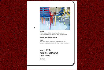 Le premier numéro de l' "espace-revue contemporain" TINA / There is no alternative paraît dans quelques jours. Publiée par les éditions èRe, animée par un collectif (Éric Arlix, Chloé Delaume, Hugues Jallon, Dominiq Jenvrey, Emily King, Jean-Charles Massera, Jean Perrier et Guy Tournaye), TINA propose des fictions, un dossier ("la littérature occupée" pour ce numéro) et une partie intitulée "veille", composée de critiques diverses.