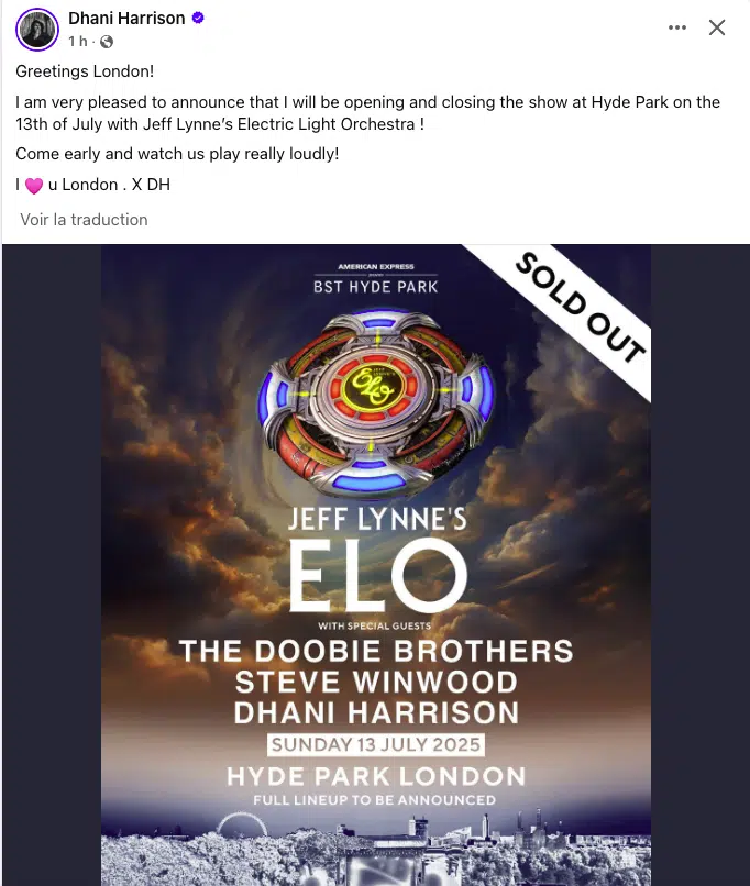 Comme nous vous l’avions annoncé, Jeff Lynne et son groupe ELO se produiront le 13 juillet prochain à Hyde Park, à Londres, dans le cadre d’une mini-tournée qui ressemble un peu à une tournée d’adieu.