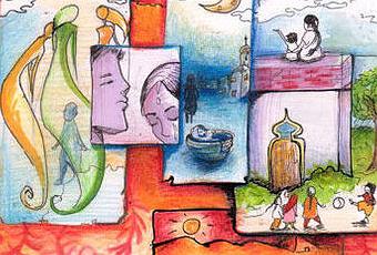 Tout les autres dessins autours sont pour moi, des souvenirs, de la nostalgie. Une illustration colorée, vivante... et j'y vois de la tristesse... (Non Non tout va bien, je vous assure ) !!! Cela vient peut être du fait que c'est la seule case à ne pas avoir de couleur chaude. Entierement violet !!! Mon montage quant à lui, est l'inverse, un couple en devenir ou au commencement... bref et vous que voyez vous dans ces dessins ???