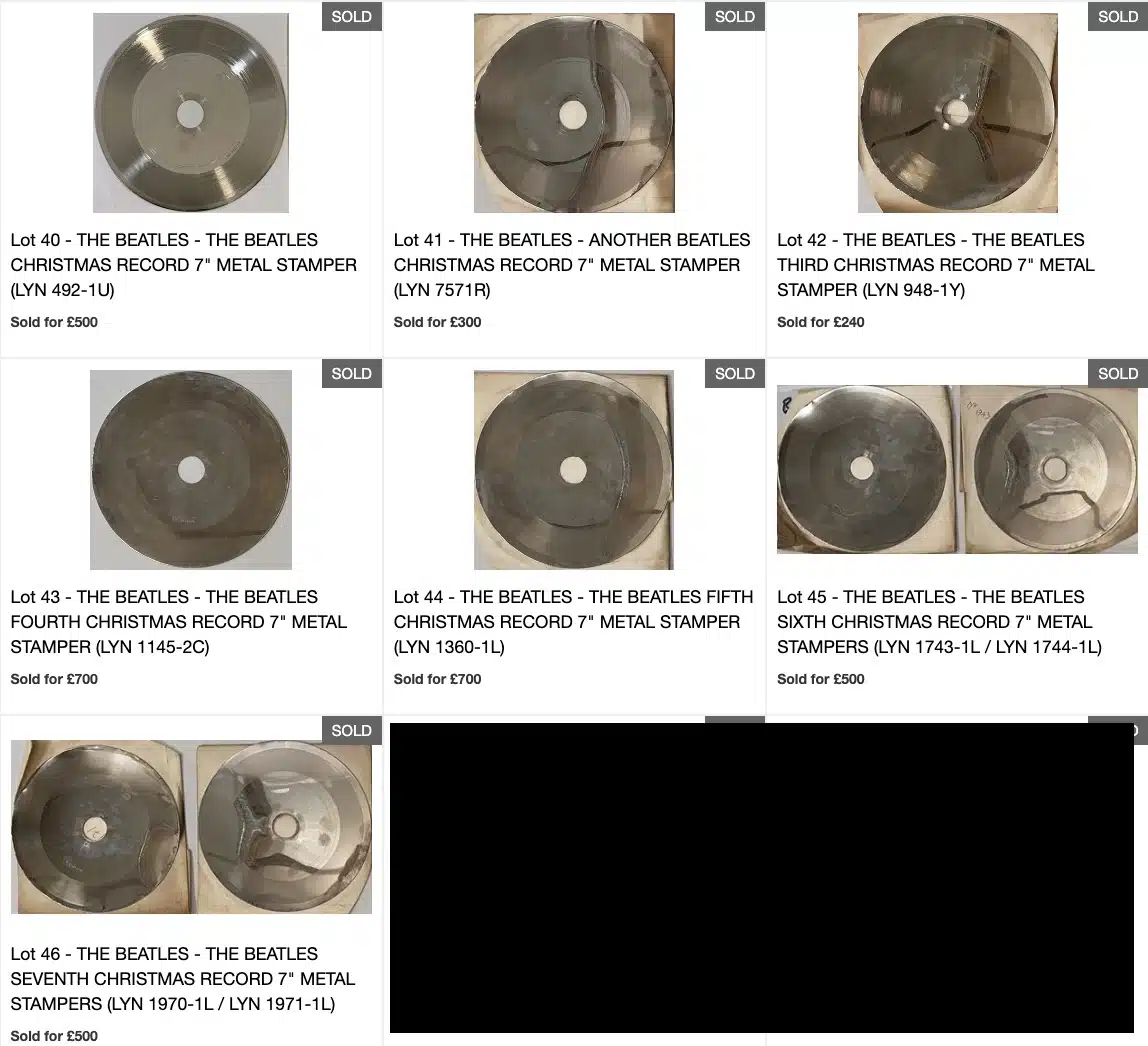En mars 2025, des matrices métalliques originales ayant servi à presser les flexi-discs de Noël des Beatles entre 1963 et 1969 ont été vendues aux enchères. Ces objets rares ravivent la mémoire sonore et l’héritage affectif des Fab Four, entre histoire musicale et émotion intemporelle.