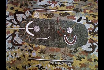 Peut-être était-ce parce que je savais qu'il y avait là, sous mes yeux, une partie d'un mythe ? Ambiguïté ? Certes, il s'agissait d'une histoire sacrée, propre à l'artiste ou au clan auquel il appartient, qu'il veut garder secrète mais qu'il peint tout de même parce qu'il y a un marché en la masquant par des combinaisons de points ou autres puisqu'il ne peut la divulguer dans son intégralité ou tout au moins n'en laisser transparaître qu'un niveau de lecture. (D'autres niveaux étant probablement accessibles aux initiés).
