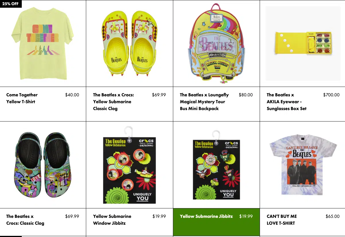 Comme vous le savez sans doute, les Beatles disposent sur leur site officiel d’une boutique de merchandising de produits estampillés sur notre groupe préféré.