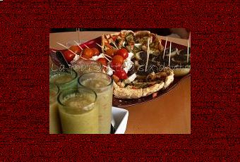 Pour vous mettre l'eau à la bouche, j'ai choisi une petite photo de l'apéritif que nous avons pu déguster : gaspacho de légumes d'été, fines tartelettes de légumes grillés aux herbes de Provence, brochettes tomates-feta et petits toast de tapenade sur pommes de terre ratte ...