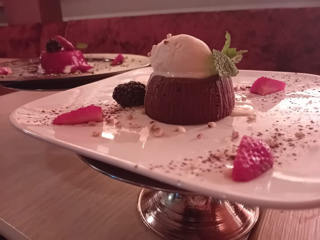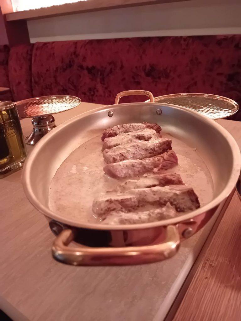 Pour suivre, ne pas manquer le Filetto Vulcanico proposé à 32 euros (filet de boeuf 260G préparé sur une pierre volcanique devant vous avec une sauce au choix). Une viande ultra tendre à déguster saignante ! A partager à deux. J’ai eu la chance d’être servie par le gérant Sandro, très accueillant.