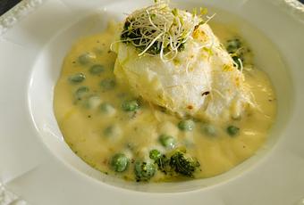 Verser les petits pois cuits dans la crème