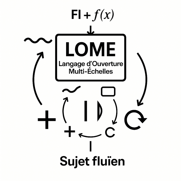 Mais ce flux brut n’agit jamais seul. Il est modulé par une fonction spécifique, notée f(x) : elle incarne les conditions locales d’activation (situation, corps, affect, intention…). C’est cette conjonction entre FI et f(x) qui alimente le cœur du dispositif : le LOME.