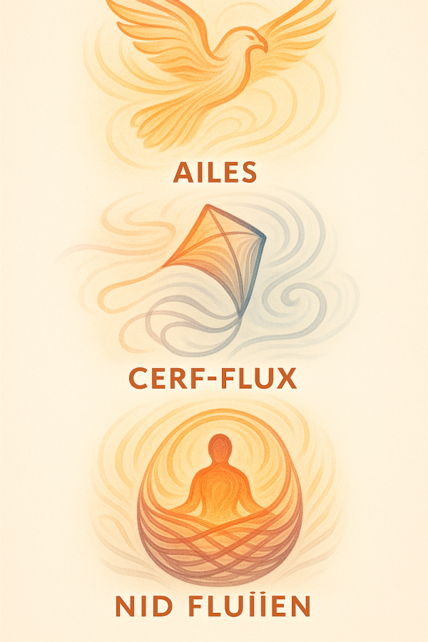 Parfaitement posé — puisque AILES (le vol préparé) et Cerf-Flux (le vol dans le vent) ont chacun une image dynamique et fluïenne, la phase de stabilisation mérite une image symétrique, vivante, mais régulée.