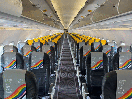 Et dans les airs aussi, la fierté s’affiche tout au long de l’année : l’un des avions A320 de la flotte a été personnalisé aux couleurs du drapeau de la Fierté, tandis que l’intérieur a été décoré pour l’occasion, avec des appui-têtes spécialement conçus pour célébrer la Fierté de cette année.