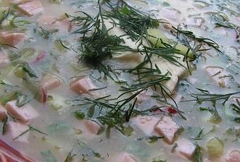 4. Servez dans des assiettes creuses et recouvrez le mélange avec le kvas bien froid.