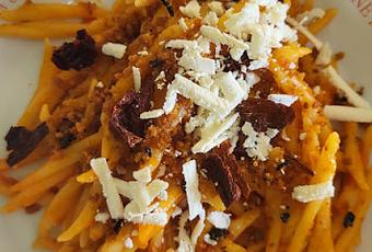 Les habitants du quartier Rabatana étaient très pauvres et ne pouvaient se permettre de manger des pâtes avec du parmesan qu'ils remplaçaient alors par de la mollica, de la chapelure faite avec du pain rassis qu'on faisait sauter dans une poêle avec de l'huile d'olive et des peperoni cruschi réduits en poudre.