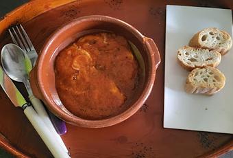 Une petite recette rapide et facile à préparer. La seule chose à laquelle il faut faire attention c'est de ne pas laisser le fromage trop longtemps cuire dans la sauce, car il risque de fondre complètement et de disparaître dans la sauce. Je sais de quoi je parle, car cela m'est arrivé. La sauce sera si appétissante que vous ne pourrez pas y résister… Préparez suffisamment de pain pour saucer ! Ainsi, vous obtiendrez un plat complet et nutritif. Vous pouvez remplacer la scamorza par de la mozzarella ou du provolone.Cette recette trouve ses origines dans les campagnes, où l'on utilisait les rares ingrédients disponibles (tomates, pain, herbes et fromage ) pour nourrir toute la famille. Aujourd'hui, nous redécouvrons la gourmandise et la simplicité de ces plats issus de la cucina povera d'autrefois.Voire la vidéo iciJ'ai remarqué que les italiens ajoutent souvent une gousse d'ail entière dans une préparation culinaire, mais qu'ils l'enlèvent après. Idem pour cette recette, mais à vous de voir si vous la laissez ou non.Ingrédients :300 g de scamorza fumée