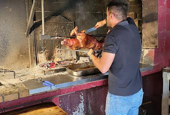 Ensuite on nous sert le plat de résistance, le porcelet avec des accompagnants, que j'ai oublié de prendre en photo.