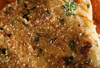 le cumin, le persil et la poudre de paprikaPeler les aubergines rôties et aplatir délicatement avec les doigtsSaler et poivrerEnrober les aubergines de farine, puis tremper les aubergines dans la dorure à l'œuf Enrober uniformément les aubergines du mélange de chapelureFaire chauffer l'huile dans une poêle à feu moyen et faire revenir les aubergines panées jusqu'à ce qu'elles soient dorées des deux côtésÉgoutter sur du papier absorbant.