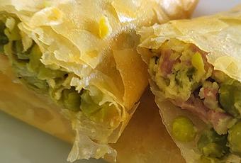 Toujours dans la série des recettes aux petits pois les nems. J'ai utilisé des feuilles de filo au lieu des feuilles de brick.
