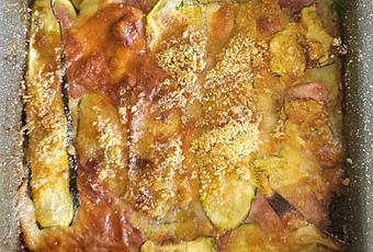 Enfourner 40 minutes. Mon conseil : manger le gratin tant qu'il est bien chaud, sinon la scamorza va se solidifier et devient un peu caoutchouteux.