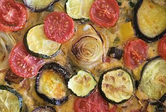 Réserver quelques tranches rondes de courgettes, d'oignons et tomates pour la décoration