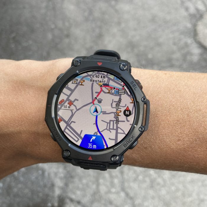 Pour mes quelques jours de prise en main, la mienne tournait sous une version logiciel bêta encore en test. Et même encore en développement. La cartographie n’a ainsi été rendue routable qu’hier soir. J’attends de tester l’implémentation qu’en a fait Amazfit dans différentes situations et rendrai mon avis dans le test final.