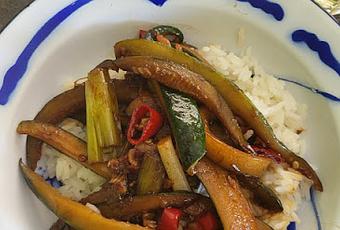 Augmentez la chaleur du feu et cuire 2 à 3 minutes jusqu'à ce que les courgettes soient cuites. J'ai servi les courgettes avec du riz
