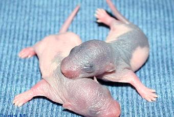 Cachou -à droite- et sa sœur Sayuri. Elles ont dix jours et leurs yeux sont encore fermés.