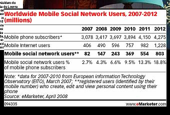 En 2012 il y a aura 600 millions d’utilisateurs de réseaux et services sociaux depuis leur téléphone mobile.