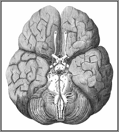 C’est donc André Vésale qui aura le véritable mérite de révéler au monde l’apparence du cerveau grâce à son De humani corporis fabrica (publié en 1543), un pavé anatomique de 700 pages, illustré par 323 planches dessinées par Jan-Stefan von Calcar.