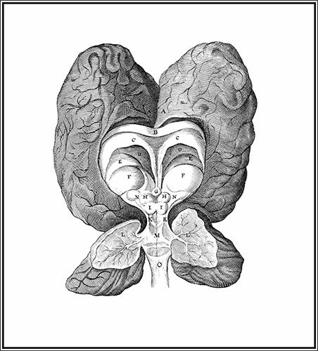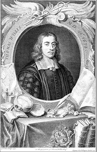 Pour en revenir à Thomas Willis, c'est lui qui a créé le terme neurologia, c'est-à-dire la neurologie. Il est l'auteur de plusieurs découvertes, notamment en neuroanatomie et en neuropathologie. Il a fait de très nombreuses autopsies et des découvertes incroyables. Ces autopsies, 20 sont analysées dans ses livres et notamment dans un célèbre ouvrage qui s'appelle Cerebri Anatomi où Willis va décrire et classer les nerfs crâniens en se fondant essentiellement sur les orifices par lesquels ils sortent du crâne. Thomas Willis va y faire une description des différentes parties de l'encéphale : le cortex, le cervelet, le striatum, le thalamus optique, le pons, les corps mammilaires, le corps caleux, etc. Les dessins sont d'une qualité folle parce qu'ils ont été réalisés par un architecte mais les dissections, on s'imagine bien, étaient d'une qualité tout aussi folle.