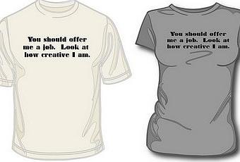 Il fallait y penser et à Blackbirds Tees qu'on doit cette idée amusante. Je ne sais pas en effet si ça se fait vraiment d'aller voir son futur employeur avec un t-shirt de ce type. Peut-être dans certains secteurs d'activités ? Selon vous ?