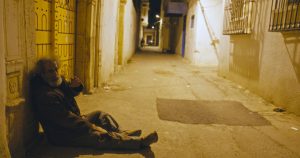 Idrissa, c’est le gars qui connaît tout le monde dans le quartier, et notamment dans l’auberge des immigrés africains. Il sait y faire mais est fauché. Face à ce vieux qui gît par terre dans ce monde d’indifférence, il se laisse guider par la compassion que lui a transmise sa mère. Il trouve un vélo pour caler le vieux sur la selle et le sortir de la ruelle de la Médina. Mais les taxis ne veulent pas jouer les ambulances et voilà ce duo incertain cheminer plus mal que bien le long d’une artère de tous les dangers dans le Tunis nocturne. Cette progression va ressembler à un chemin de croix : chaque étape est une épreuve, que ce soit des clandestins qui sentent le mauvais plan ou des braqueurs sans vergogne.