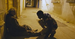 Indifférent à la souffrance du vieux, le policier ne fait que demander les papiers de l’immigré, qui vient d’en être dépecé ainsi que de son téléphone. Ils ne peuvent que compter sur eux-mêmes mais Idrissa ne lâche pas. Le voilà à devoir pousser péniblement le vélo où il a installé Hassan qui geint à chaque secousse sur l’avenue qui monte à l’hôpital comme au Golgotha. « Mon ami » devient « mon fils », mais a-t-il seulement un fils, ce vieux dont nous ne saurons rien ?