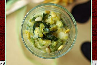 Caviar de courgettes au salers, cumin et pignons