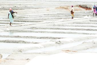 Elles arrivent aux aurores, quand la lumière d'opale frôle les champs. On ne les reverra plus tellement redresser la tête avant le soir, entassées à l'arrière des camions toussotant un diesel noir, puant, brûlant. Il en est ainsi tous les jours pour ces cueilleuses de sel, et pour les femmes des rizières, et celles du coton aussi, ces porteuses de couleurs serties dans une aveuglante mélancolie, figures efflorescentes dans l'abstraction géométrique de la cruauté.