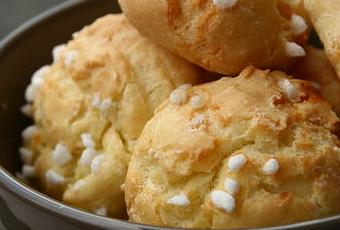 Sur une plaque munie de papier sulfurisé, et à l'aide d'une cuillère formez vos futures chouquettes. Saupoudrez de sucre en grain et enfournez 25 mn à Th 180 °