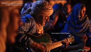 Abdallah est un grand artiste. C'est un des pères fondateurs de tout un mouvement culturel qu'on appelle « la guitare touarègue », donc la musique des Ishumars, qui est née dans les années 70-80 entre le sud libyen et le sud algérien. En plus de la musique, il a une vaste réflexion sur le monde touareg, sa culture et ses évolutions. Cela me permettait d’aborder la question d’un avenir possible, comment se penser et se représenter tout en étant dans un autre monde. De plus, c'est un grand poète. Un connaisseur aussi de la poésie touarègue qu’il a collectée (et interprétée) de Tombouctou à Agadez, de Tamanrasset à Ménaka. Il a écrit les plus belles chansons de leur répertoire. Il nous raconte le monde poétiquement et philosophiquement. C'est un ami très proche avec lequel je partage une certaine nostalgie du monde saharien d’avant, de la simplicité de la vie dans le désert et évidemment nos inquiétudes de voir ce monde disparaitre. Ce qui m’a intéressé avec lui, c’est son côté très érudit, cultivé, malgré son jeune âge. Abdallah est considéré comme la principale figure intellectuelle de ce mouvement de la musique contemporaine touarègue. Dans ce film, je voulais des personnages de cette trempe-là, pour rompre avec une certaine idée et les clichés sur le monde touareg. J'ai pu constater - hélas - dans mes voyages, depuis 35 ans, notamment en Europe, que n’importe quelle personne pouvait se présenter comme « spécialiste », ou « représentant » des Touaregs, pour peu qu’elle s’habille en bleu avec un chèche sur la tête et qu’elle ait fait un voyage au Sahara ! Comme avec les autres personnages du film, j’ai passé beaucoup de temps avec Abdallah également, avant de le filmer et dans le cadre du tournage quand le groupe était en résidence pour l’enregistrement de leur album « Amadjar » (l'invité ou l’hôte) il y a quelques années près de Nouakchott. J’aurais pu faire un film sur lui, sur le Tinariwen !