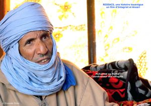 De fait, aborder cette longue période dans un film de deux heures, serait impossible, il faudrait faire une série de deux ou trois longs métrages, alors que la fabrication de ce film unitaire relève du miracle en termes de financement, de production. De plus, je voulais que le film « parle plus » de la société touarègue contemporaine. C’est la raison pour laquelle, je démarre l'histoire à partir de Médine sous forme de fil en filigrane dans l’histoire contemporaine, pour retracer la longue traversées ancestrale : « une sorte d'exil millénaire ». En fait, il est dit dans cette histoire que les ancêtres des Kel Ansar quittèrent Médine car ils ne voulaient plus faire la guerre. Ils ne voulaient plus s'opposer à d'autres musulmans comme eux, pour se consacrer uniquement à la paix et à la religion dans sa dimension purement mystique et spirituelle. C’est une suite de fondations, d’implantations, mais surtout de pérégrinations, depuis l'ancêtre Sanb ibn Mohamed ibn Amr (fin du VIIème siècle) de Médine à l’Egypte, de la Libye à l’Andalousie, puis du Maroc-Algérie au Sahara central… Dans cette longue traversée effectuée par un ou plusieurs descendants selon les contextes et époques, il y a eu ce qu'ils appelaient un passage de testament. À chaque aïeul qui continuait, il y avait un testament qui était livré pour rappeler le serment de non-violence transmis de père en fils-ainé. Ce testament stipulait : « On ne fait pas ce qui pourrait occasionner la guerre, on cherche la paix. Et on s’établit là où c’est possible ». Et ainsi ils se sont succédé de génération en génération après la Libye jusqu’à l'époque andalouse où ils passeront près d’un siècle avant qu’une partie n’en reparte vers le sud marocain, près de Marrakech puis le sud algérien où Abu-Bakren ibn Yehya (1106-1189), l’héritier du conseil ancestral, creusa le puits d’In Salah, qui donna son nom à l'actuelle grande ville du sud algérien. À partir de cette époque, la descendance d’Abu-Bakren se spécialisera particulièrement dans le creusage des puits, permettant la vie au Sahara par la maîtrise de l’eau, pour l’accomplissement « de la destinée tribale » : la recherche de la spiritualité, le goût de la solitude fortifié dans la réclusion désertique… Ce récit est conservé à l’écrit et dans la tradition orale, de manière précise : avec des datations, des noms, des lieux et des personnages, chez les Kel Ansar. J’ai voulu rendre compte de cette mémoire en évoquant le récit de cette quête dans le fil historique porté par le patriarche des Kel Ansar, personnage du film Mohamed ag In-della, centenaire et dernier conservateur de cette tradition historique ancienne.