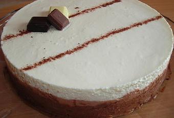 8) Répétez les opérations précédentes pour faire votre mousse au chocolat au blanc que vous verserez ensuite sur la mousse au chocolat au lait. Lissez bien le dessus avec un couteau plat.