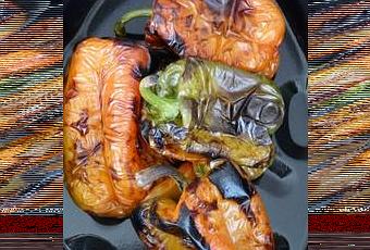 Passer les poivrons sous le gril du four, en les tournant et retournant jusqu'à ce que la peau se boursouflle et devienne un peu noire.