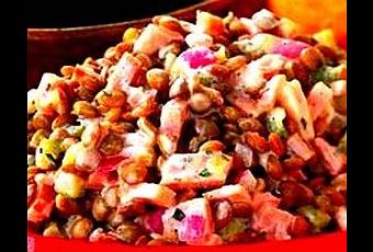 Salade de lentilles à la macédoine des fonds de placard , vinaigrette crémeuse à l'orange