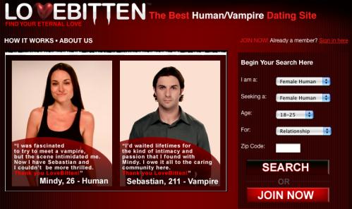 Lovebitten.net est réellement en site de rencontre principalement dédié pour les "vampires" mais vous humains vous pouvez tout a fait vous inscrire et entrer en contact avec des personnes enfin comment dire vraiment "space", je ne sais pas si c'est le mot adpaté pour ce monde, en bref vous entrez dans a communauté des vampires OK !!