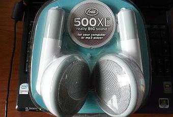 Premier de mes achats de cet été, les “500 XL Really BIG Sound” de la marque Fred, dont je vous avais déjà parlé ici. Ils viennent du magasin Urban Outfitters qui est plutôt porté sur le design et la mode, aucune spécialité dans le son donc. Le principal interêt réside en fait dans leur forme, celle des écouteurs iPod mais en plus gros, d’où le nom … sont pas bête chez Fred !