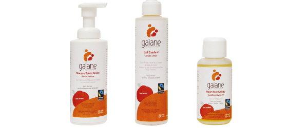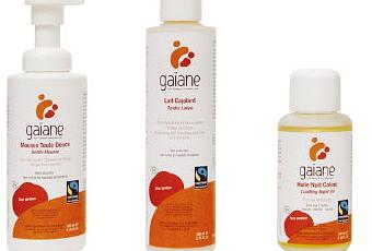 La gamme Gaïane bio-équitable comporte, à ce jour, trois produits : La Mousse Toute Douce, Le Lait Cajolant Gaïane, et L’Huile Nuit Câline Gaïane.