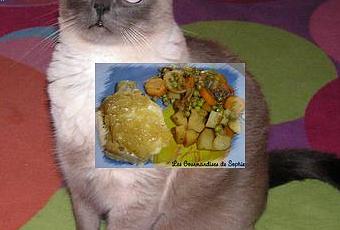 La photo n'est pas terrible, parce que ce plat, même s'il est très bon, n'est pas très esthétique...Je l'ai servi avec une jardinière de légumes maison, évidemment !